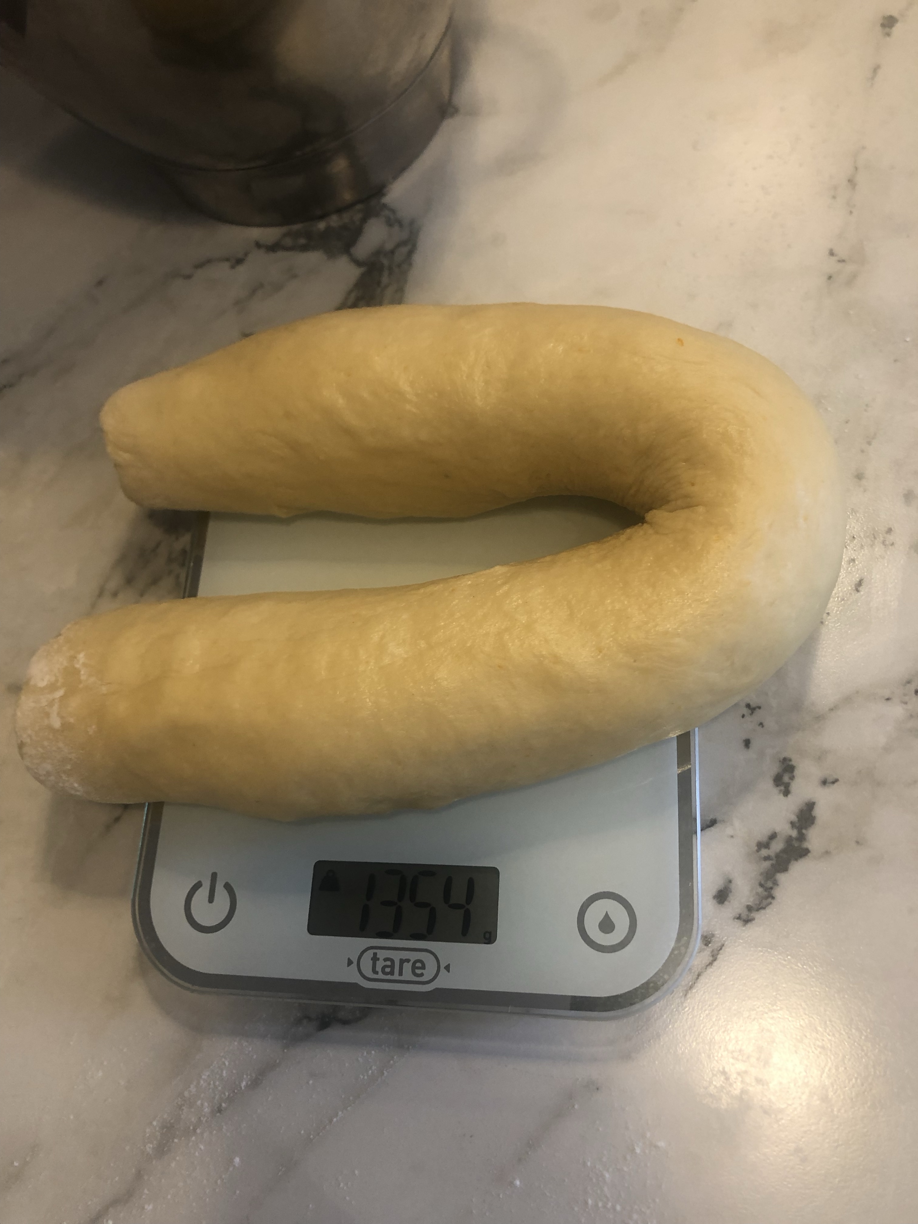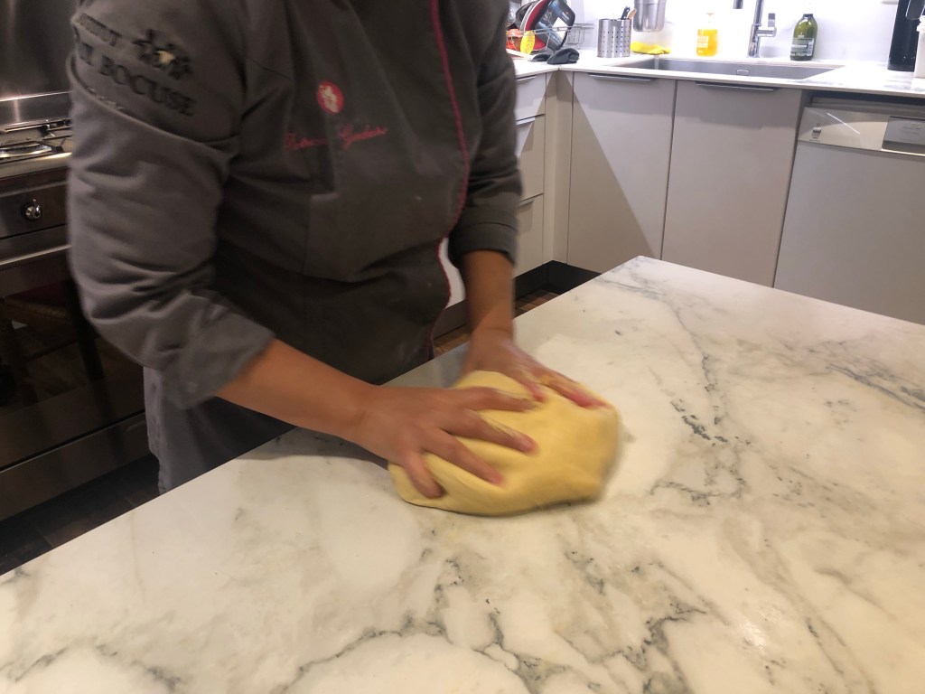 Ajuster si besoin pour obtenir la consistance désirée : un peu de farine ou 1 cuillerée à soupe de lait. Il faut que la pâte se décolle de la bassine facilement et qu’elle ne colle pas trop aux mains. Vérifier l’élasticité de la pâte en la tirant un peu avec les doigts.