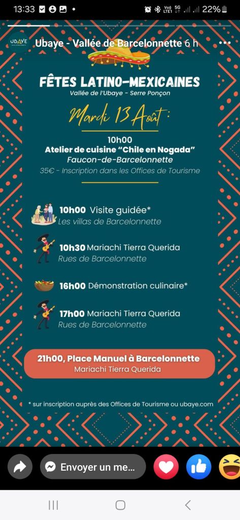 Chaque année au mois d’août, c’est un air de Mexique qui souffle sur Barcelonnette, dans l’Ubaye. Depuis près de 40 ans, c’est l’occasion de découvrir les coutumes, la musique et la gastronomie de « México! » au travers de spectacles, de déambulations et d’ateliers.