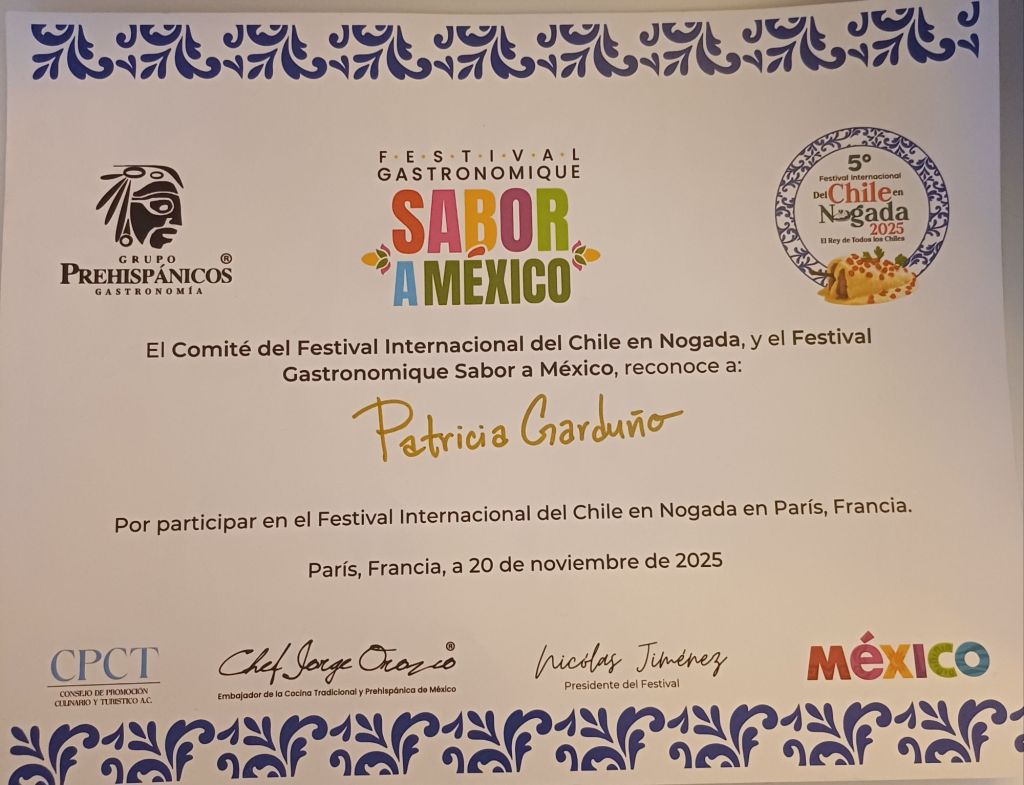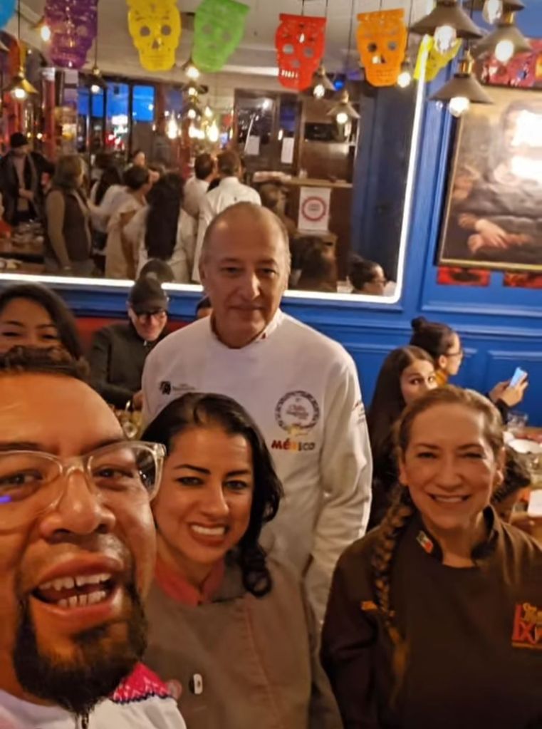 Ce moment a réuni plusieurs chefs venus du Mexique et d’Europe, tous passionnés par la richesse de la cuisine mexicaine. Ensemble, nous avons reçu une reconnaissance pour notre participation à ce festival, mettant à l’honneur un plat iconique et chargé d’histoire.